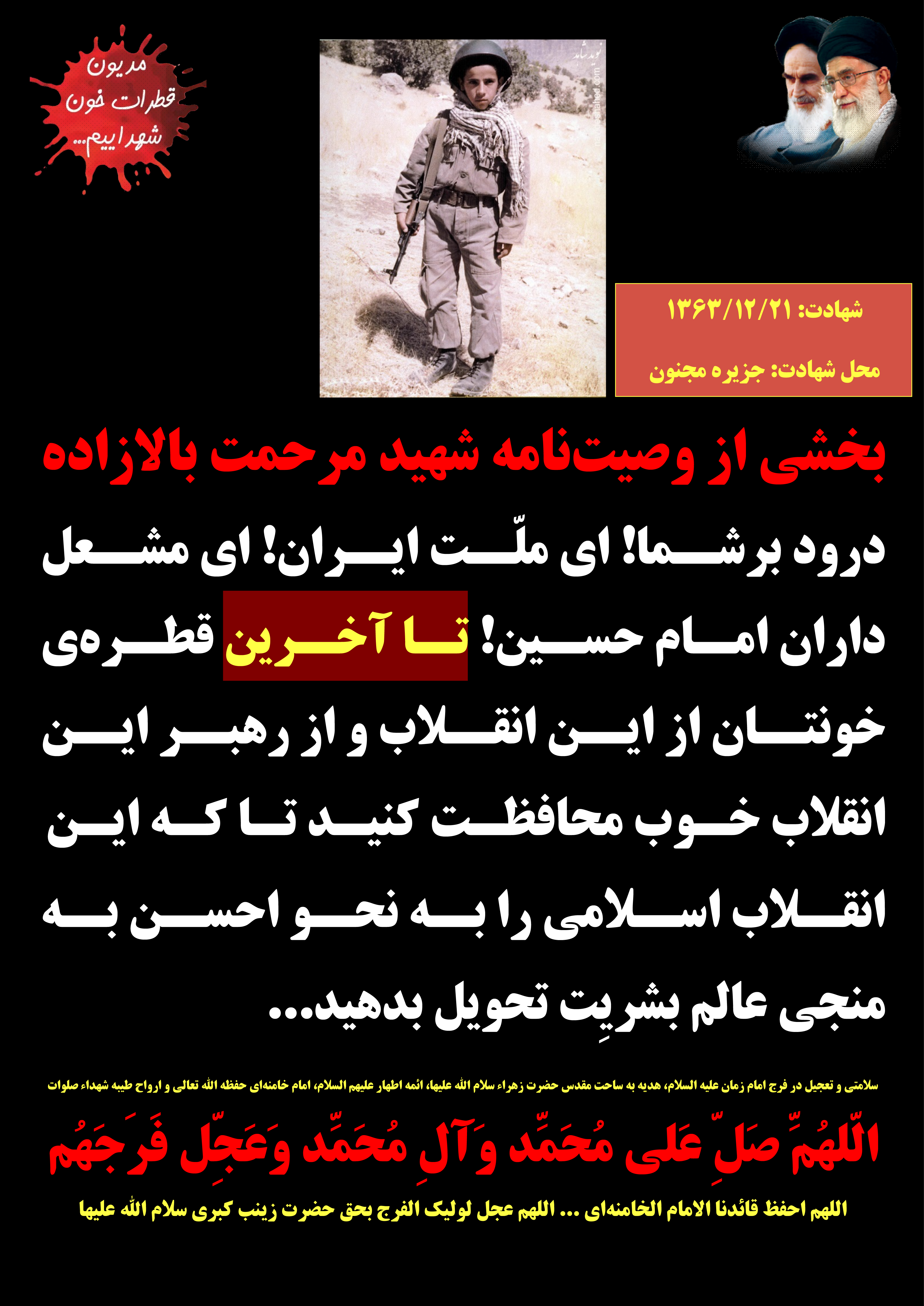 بخشی از وصیتنامه شهید مرحمت بالازاده