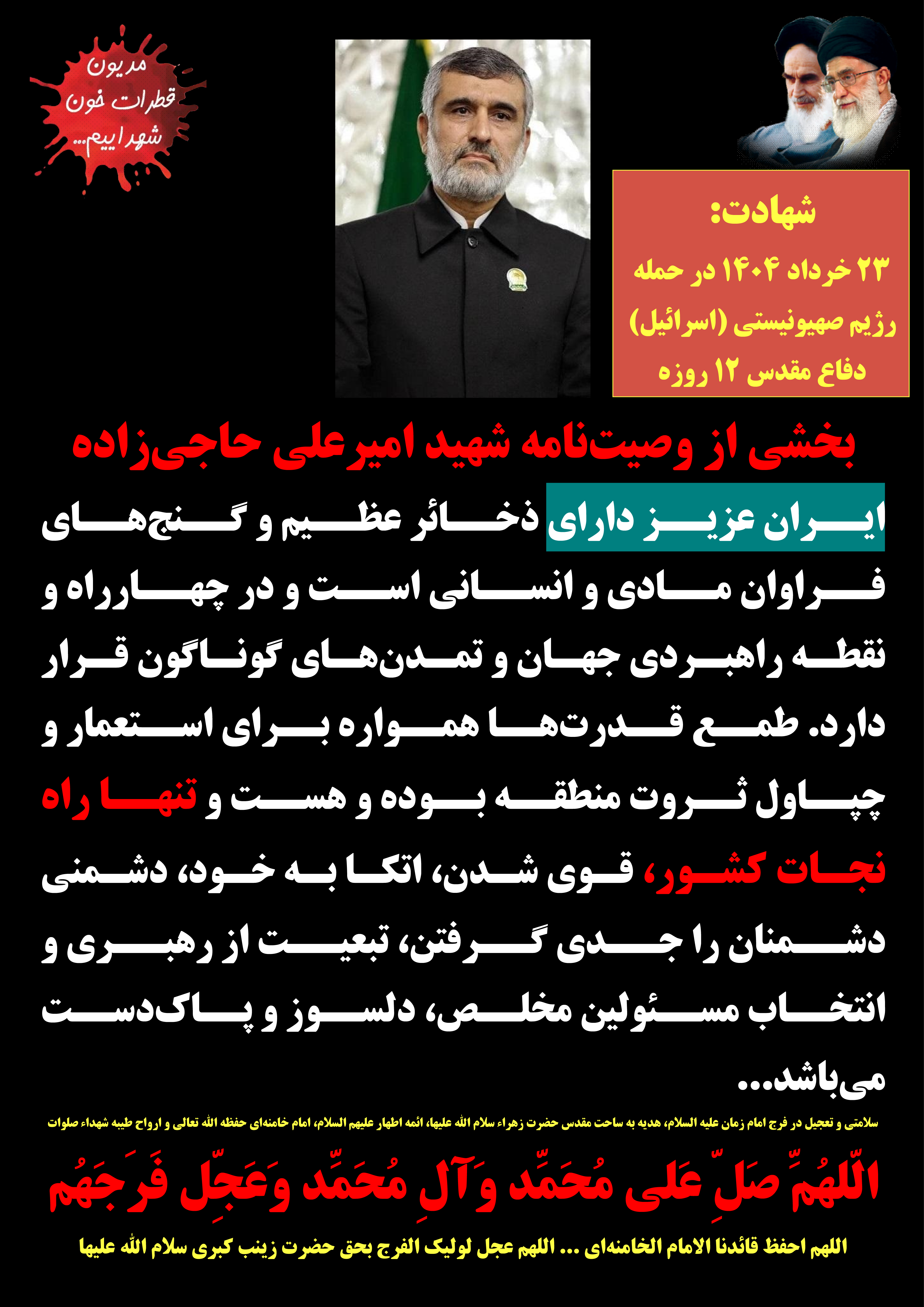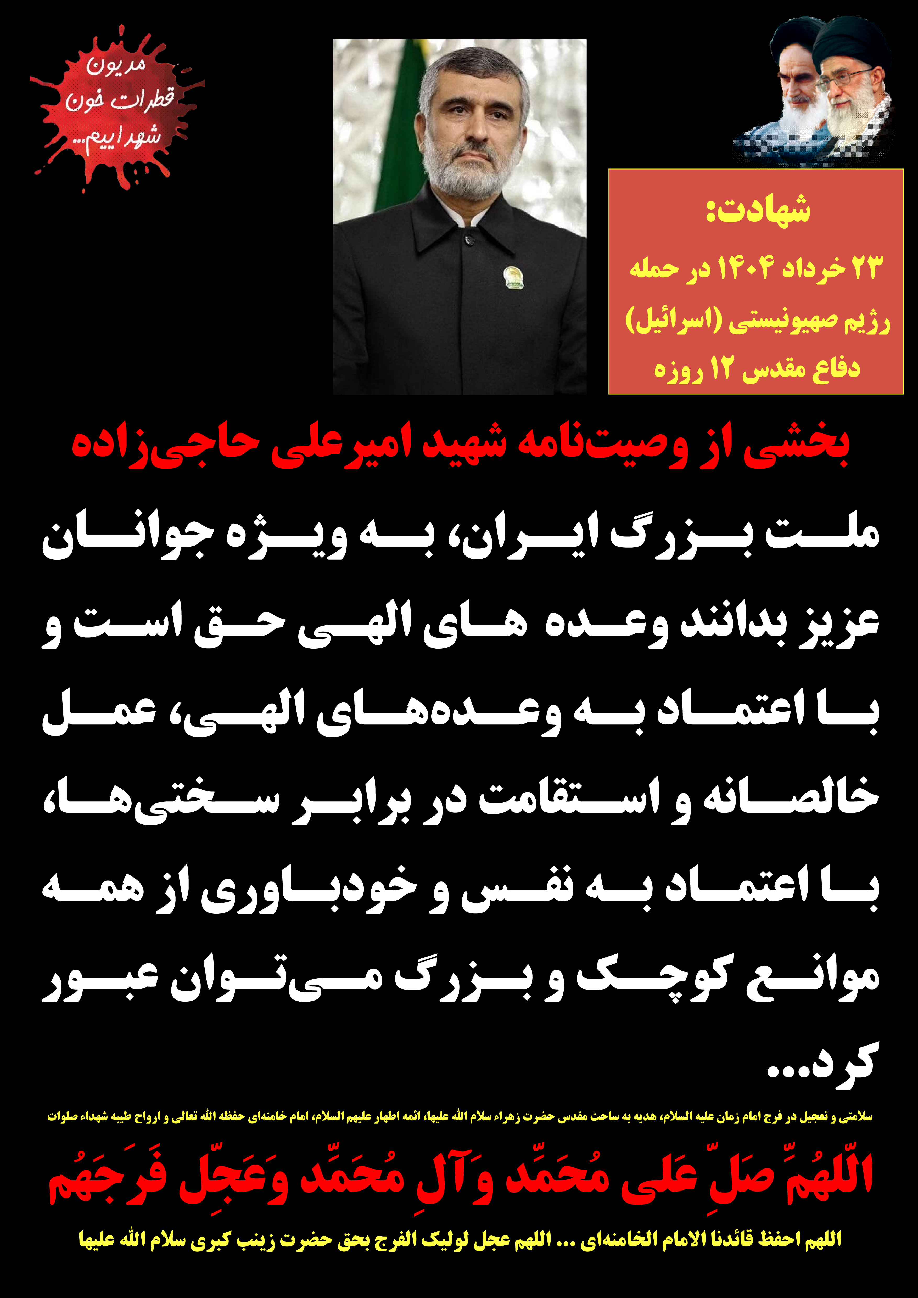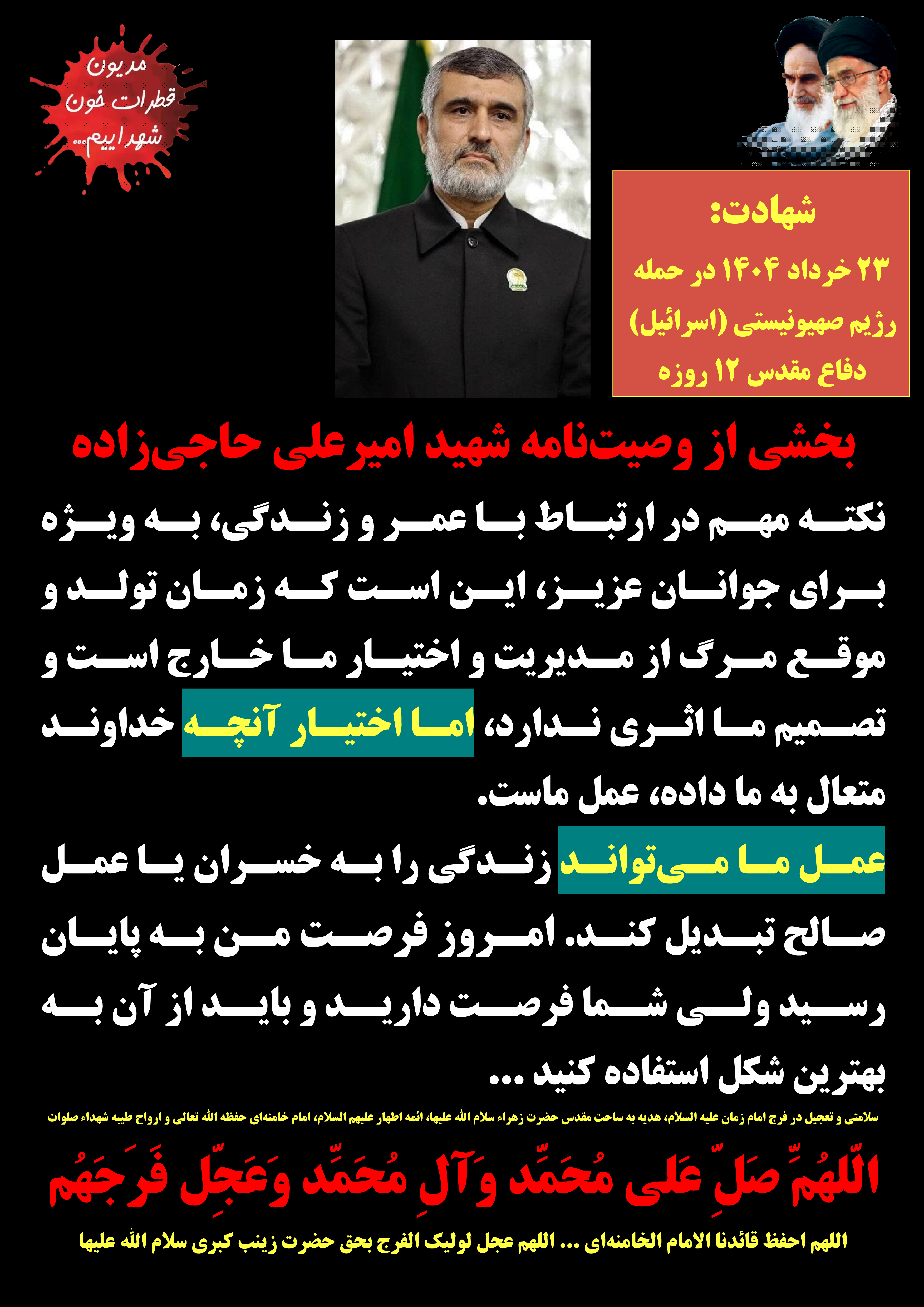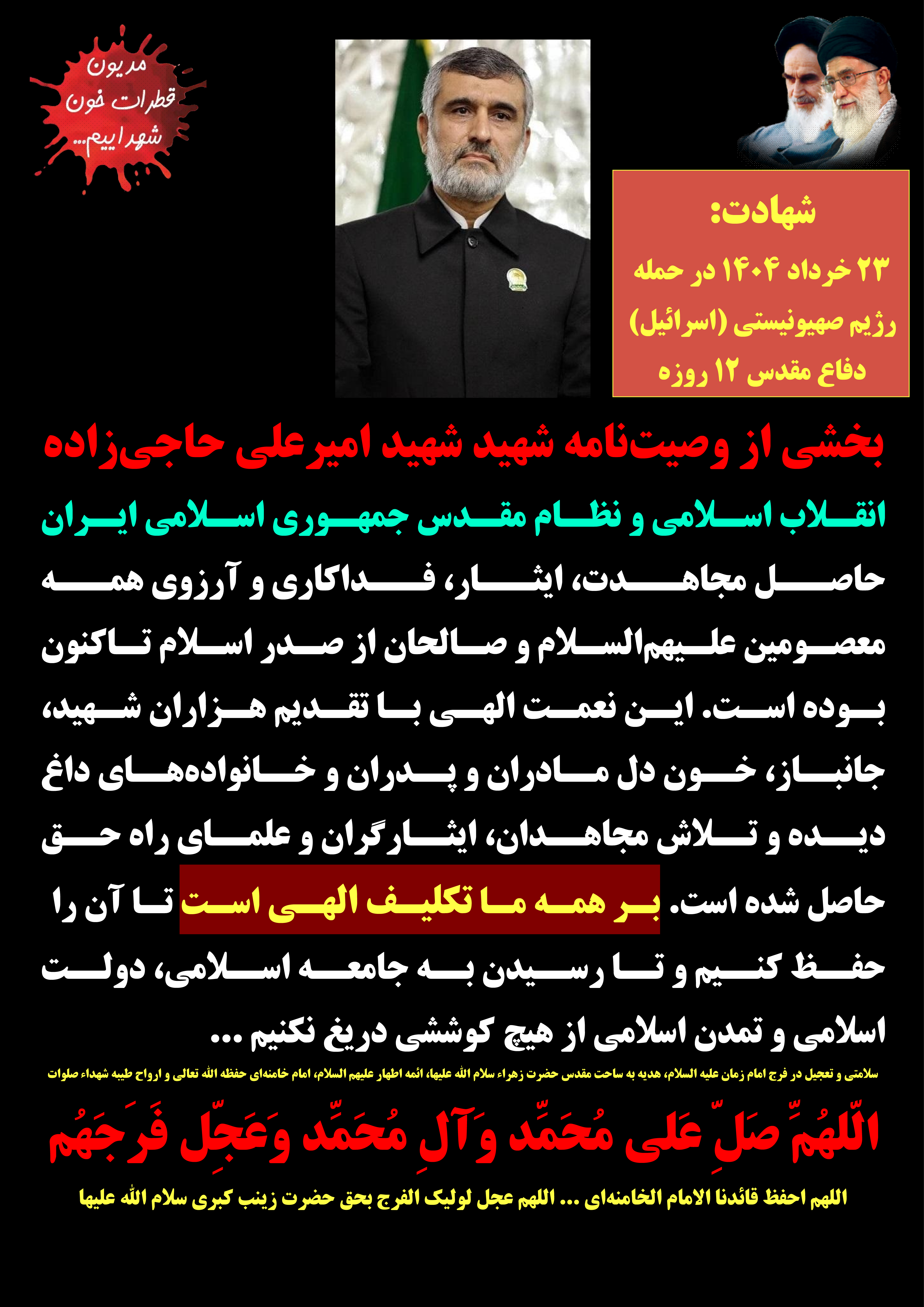 بخشی از وصیتنامه شهید شهید امیرعلی حاجیزاده