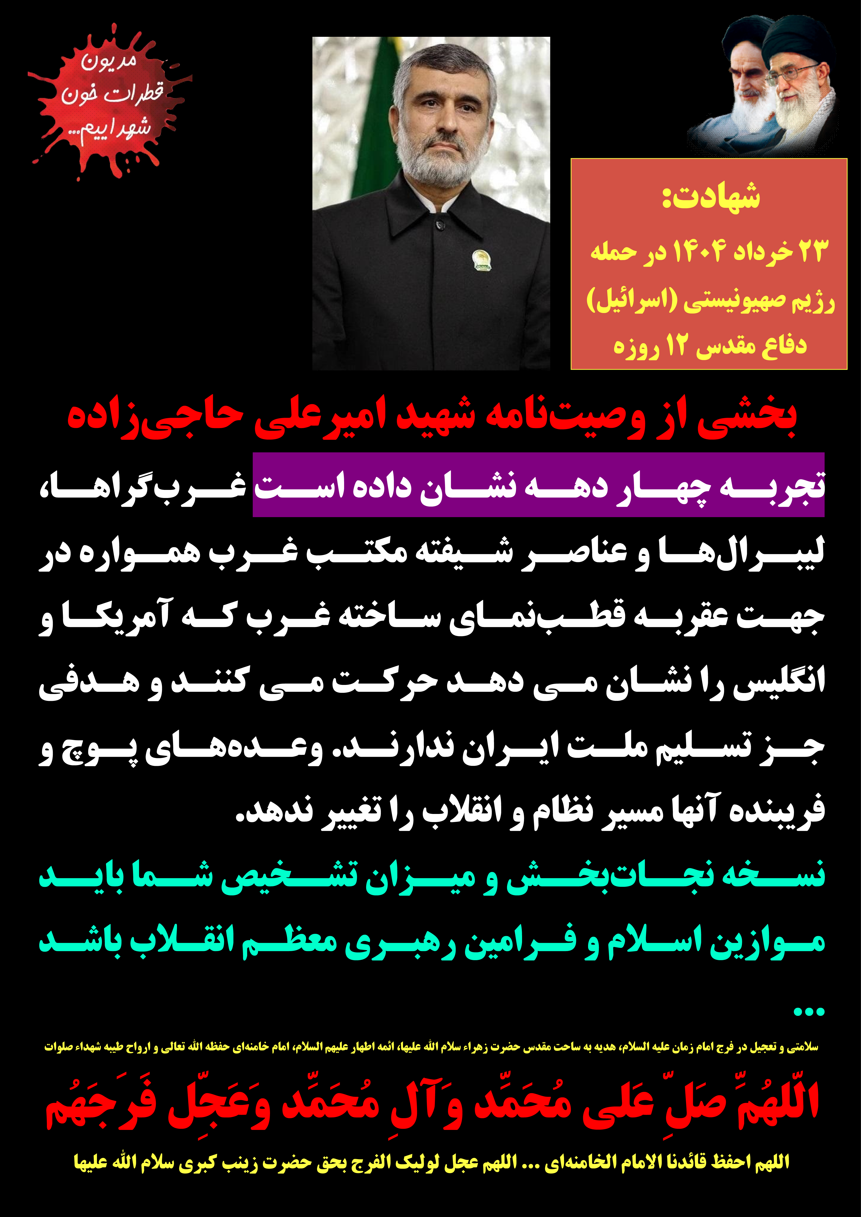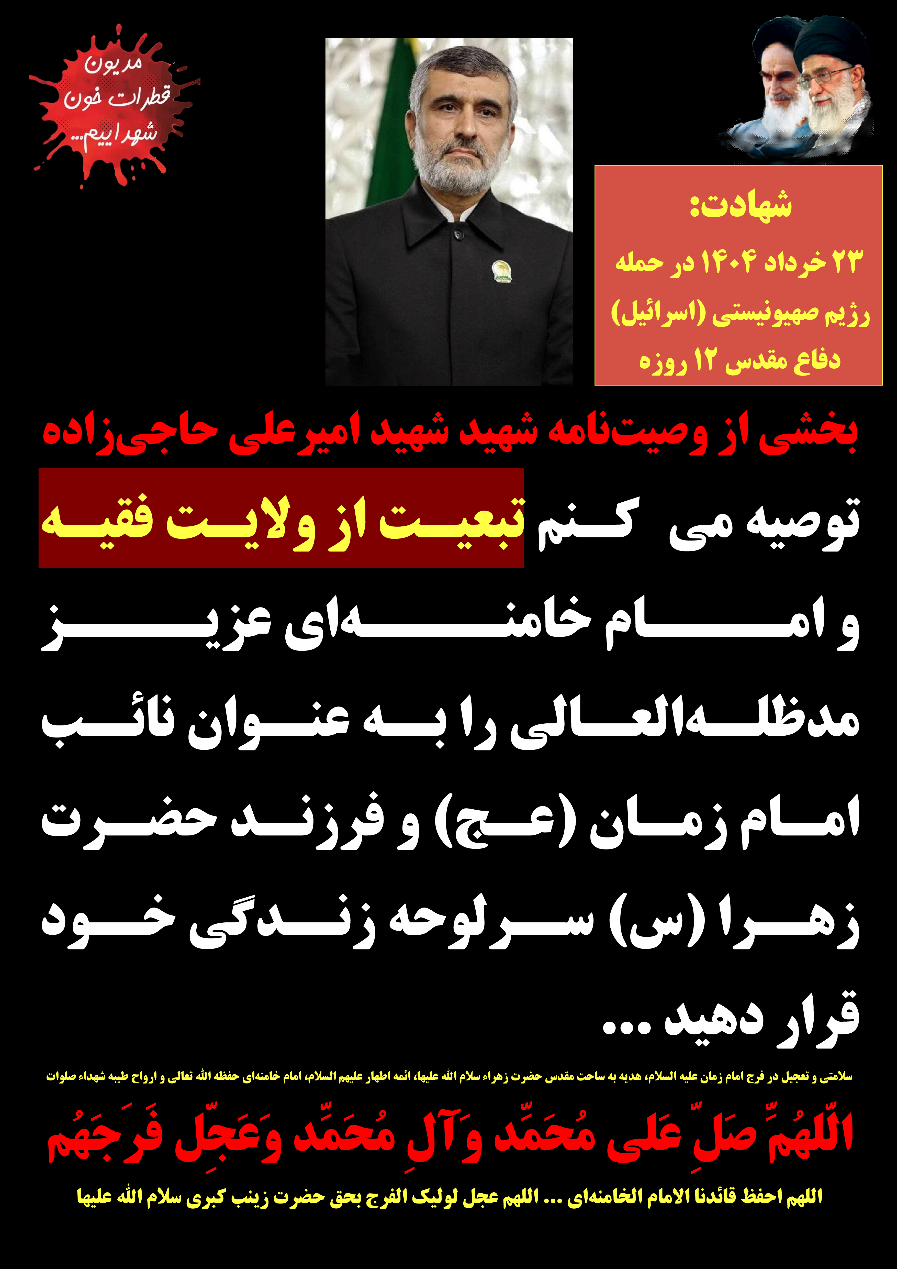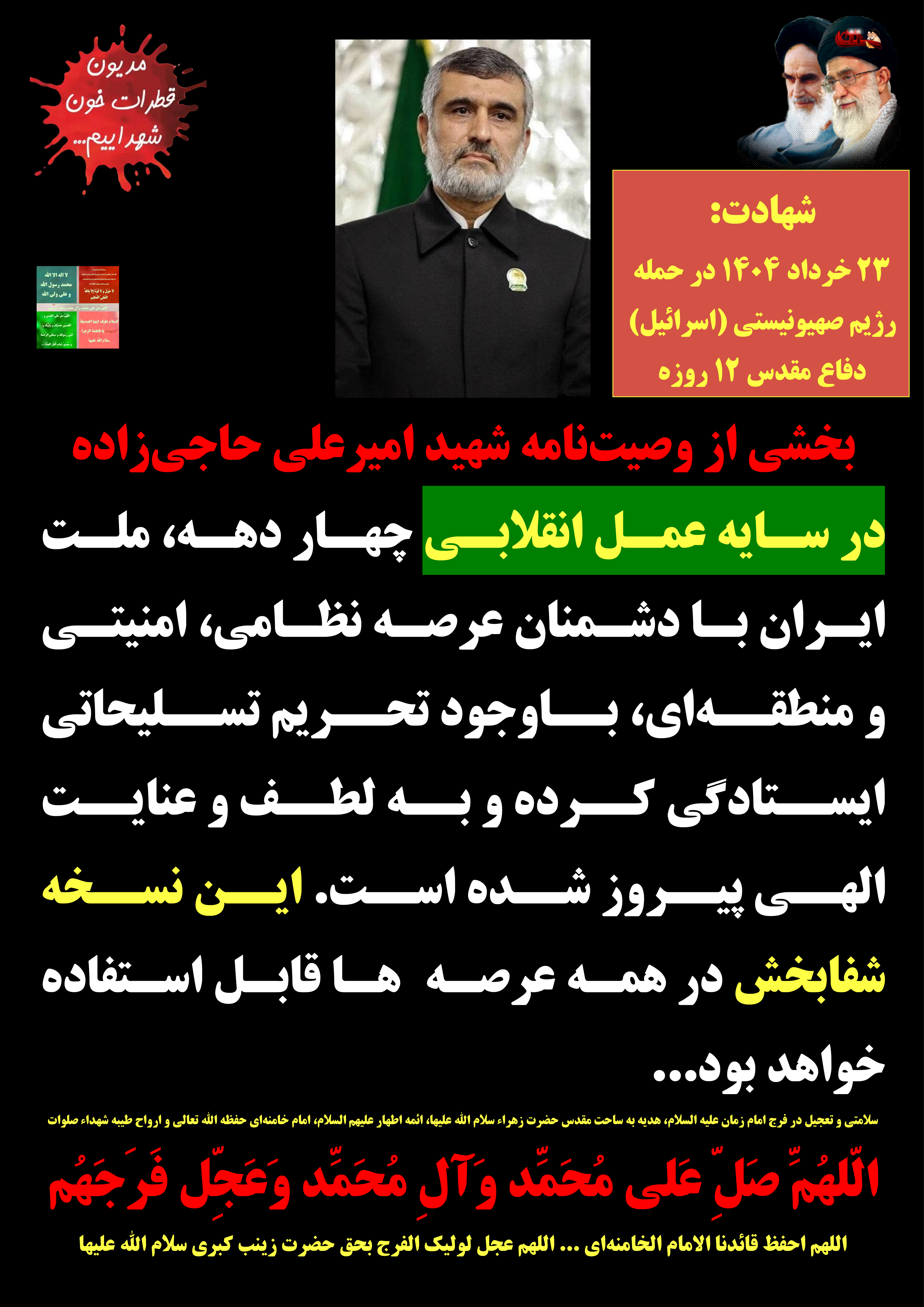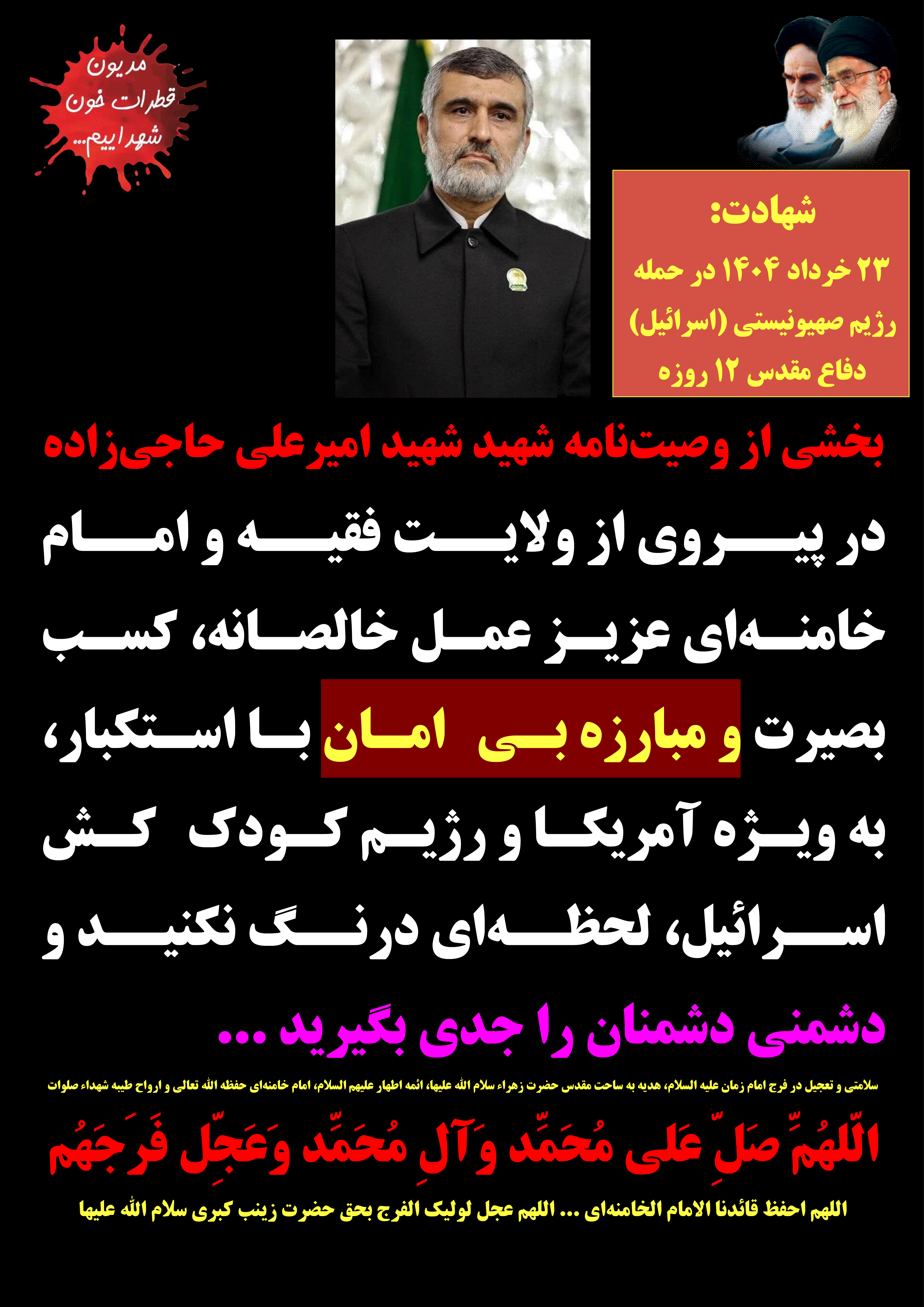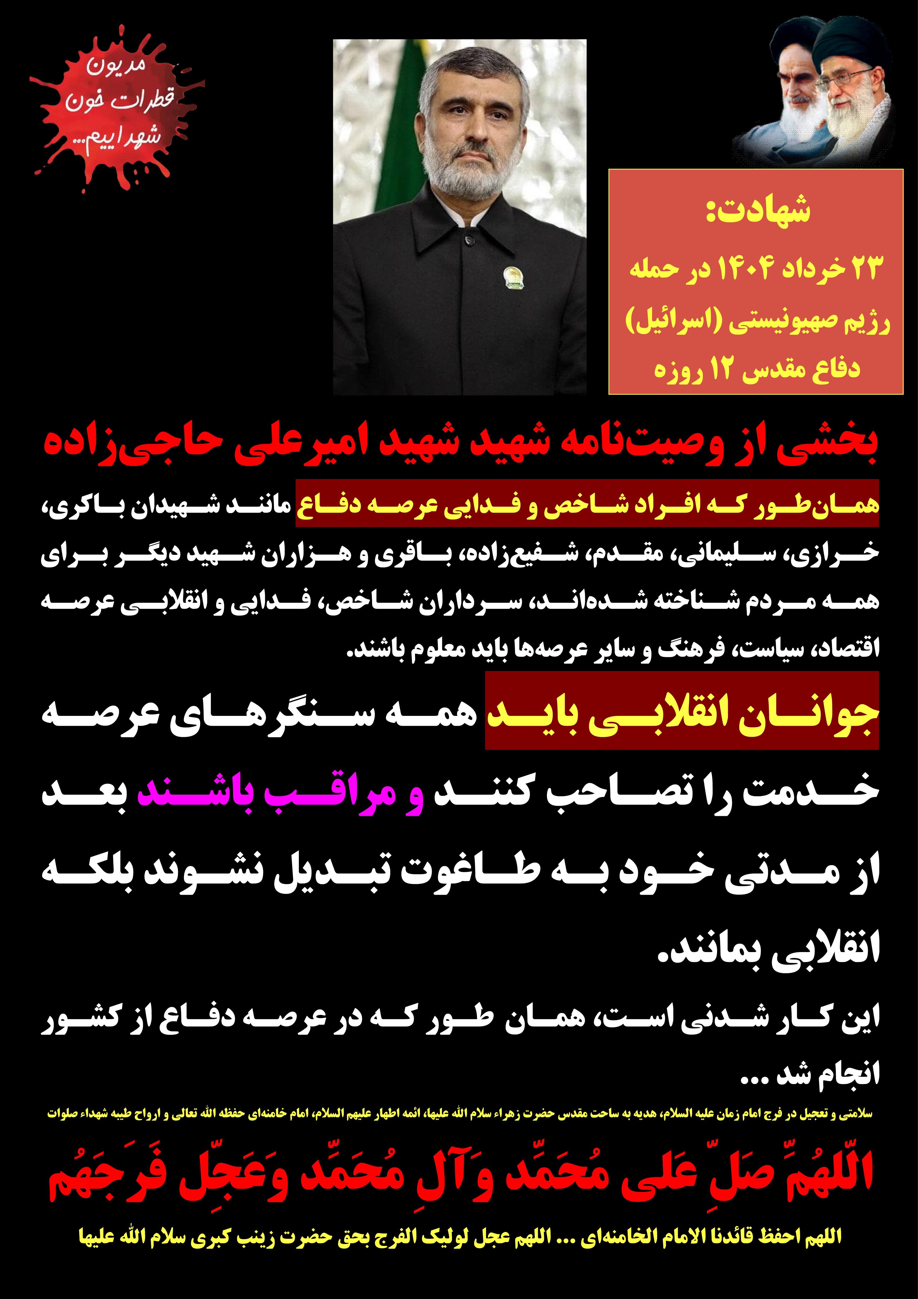 بخشی از وصیتنامه شهید شهید امیرعلی حاجیزاده