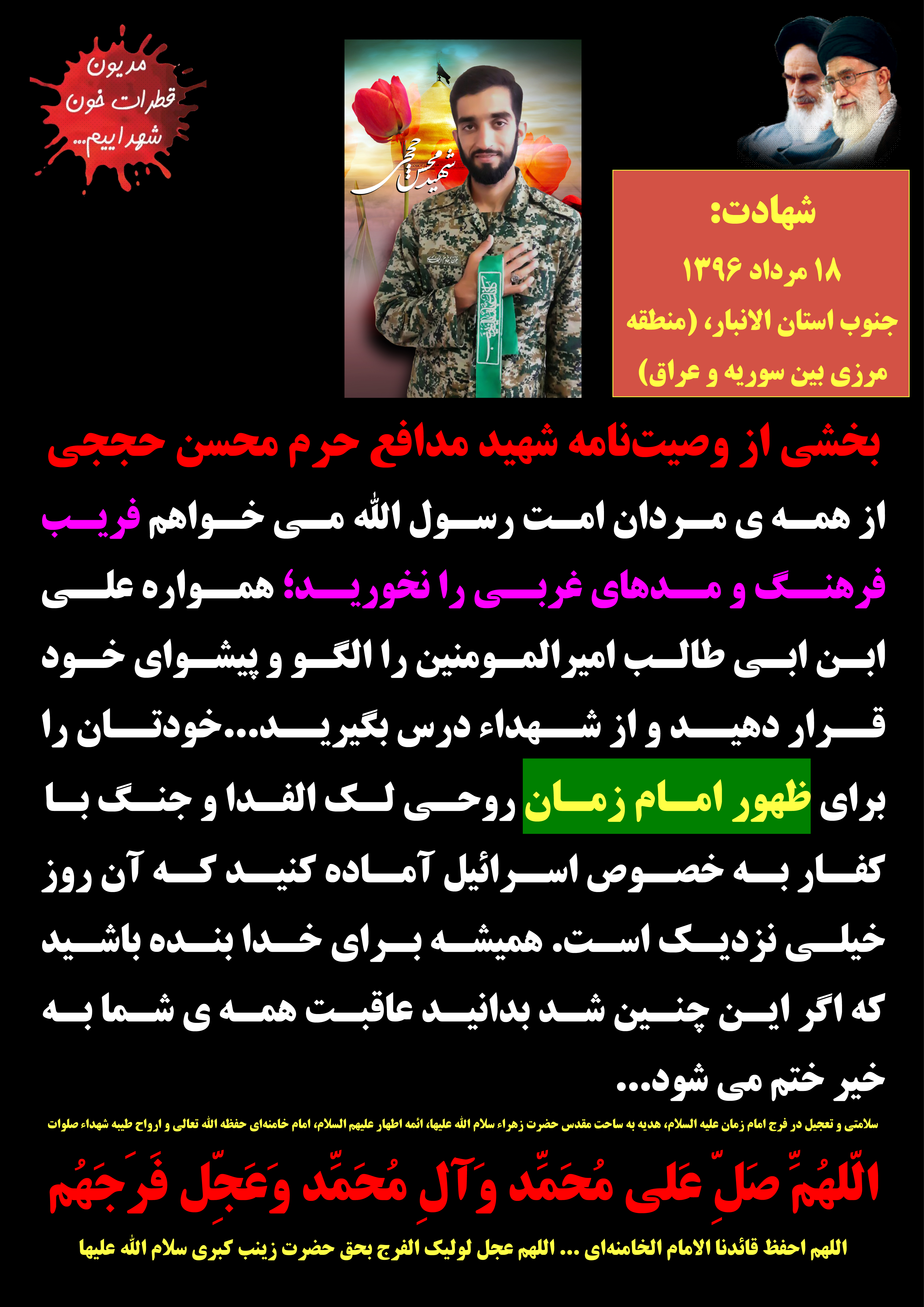 بخشی از وصیتنامه شهید مدافع حرم محسن حججی