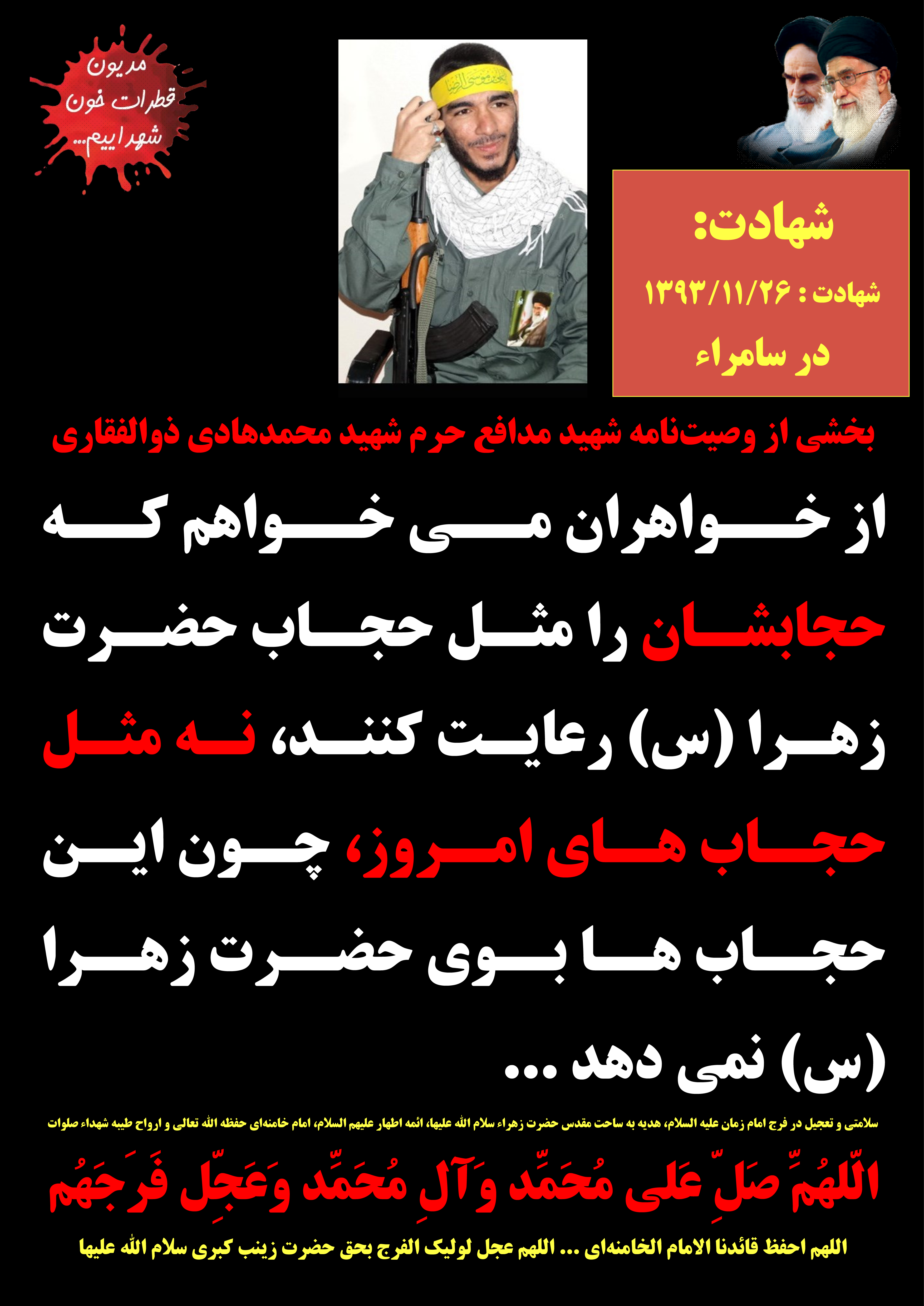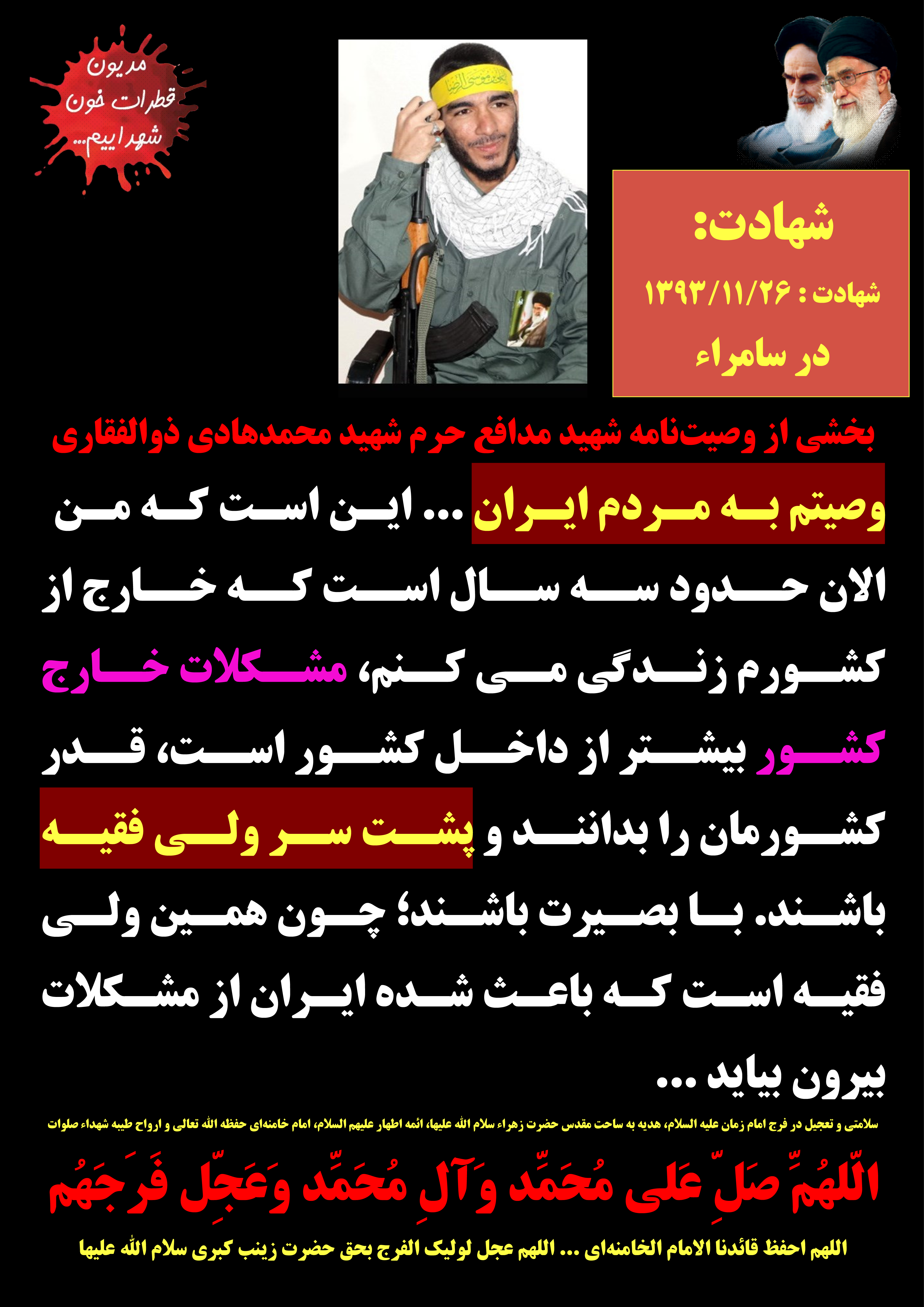 بخشی از وصیتنامه شهید مدافع حرم شهید محمدهادی ذوالفقاری