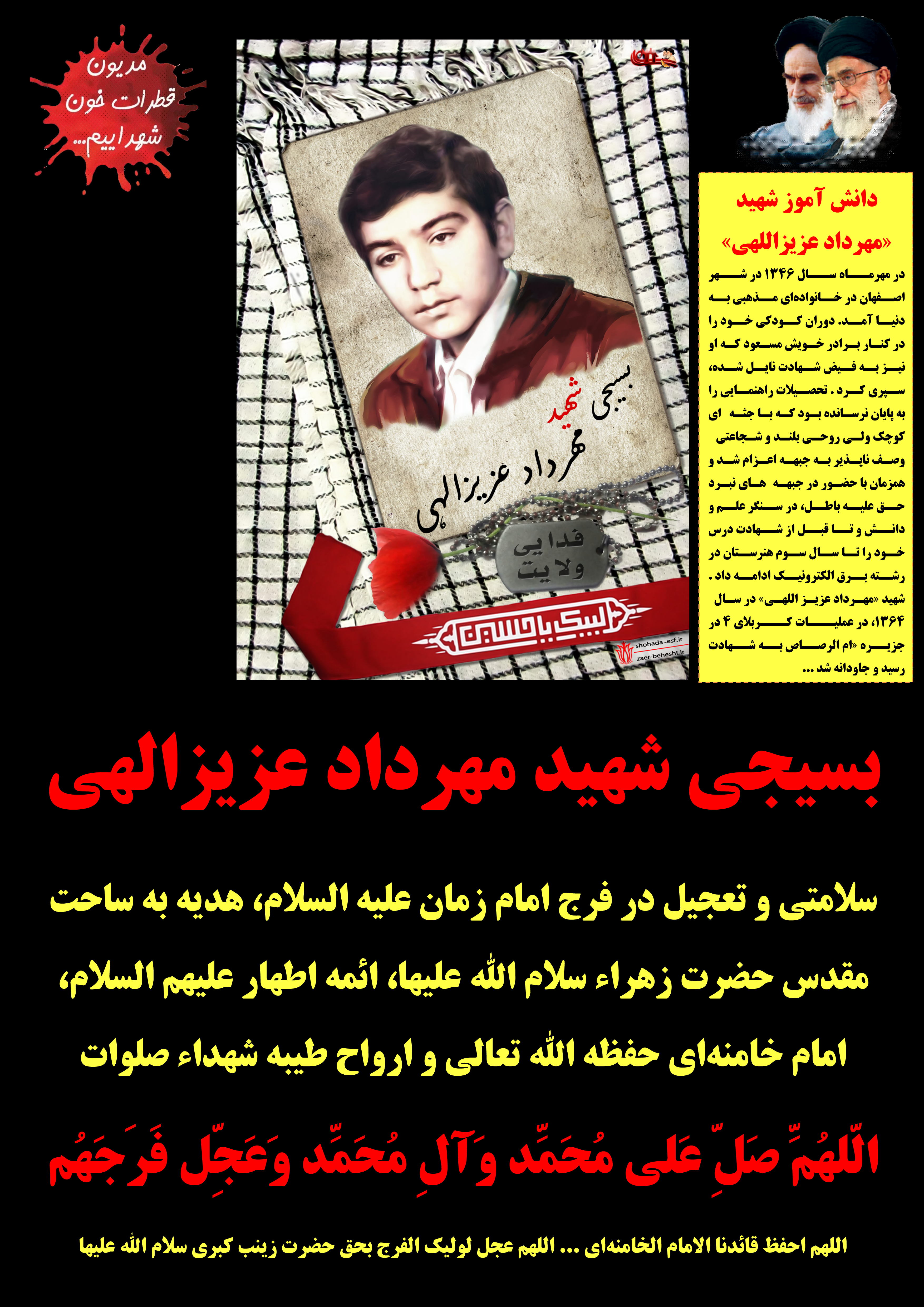 سلامتی و تعجیل در فرج امام زمان علیه السلام، هدیه به ساحت مقدس حضرت زهراء سلام الله علیها، ائمه اطهار علیهم السلام، امام خامنهای حفظه الله تعالی و ارواح طیبه شهداء صلوات