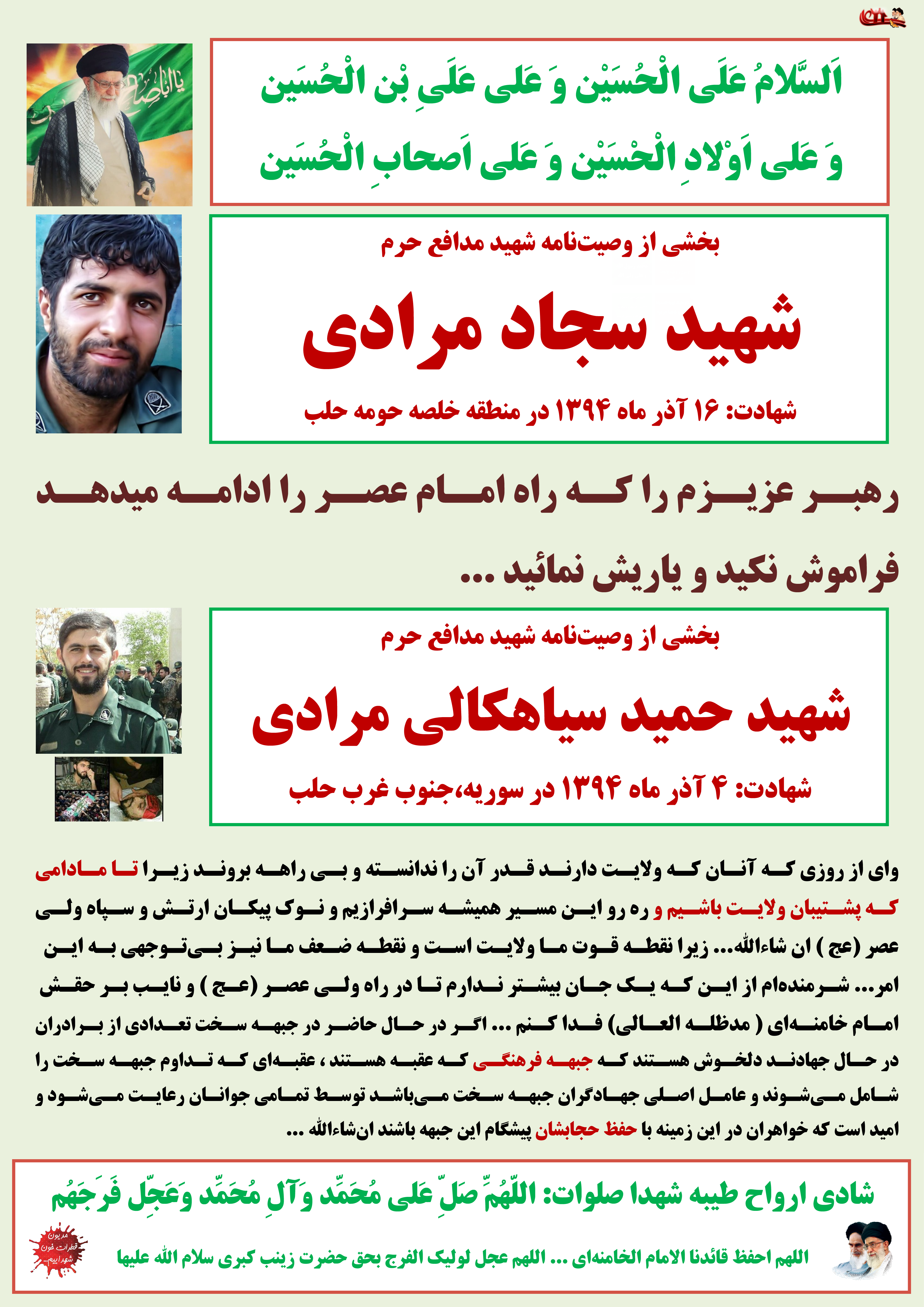 بخشی از وصیتنامه شهید مدافع حرم شهید سجاد مرادی