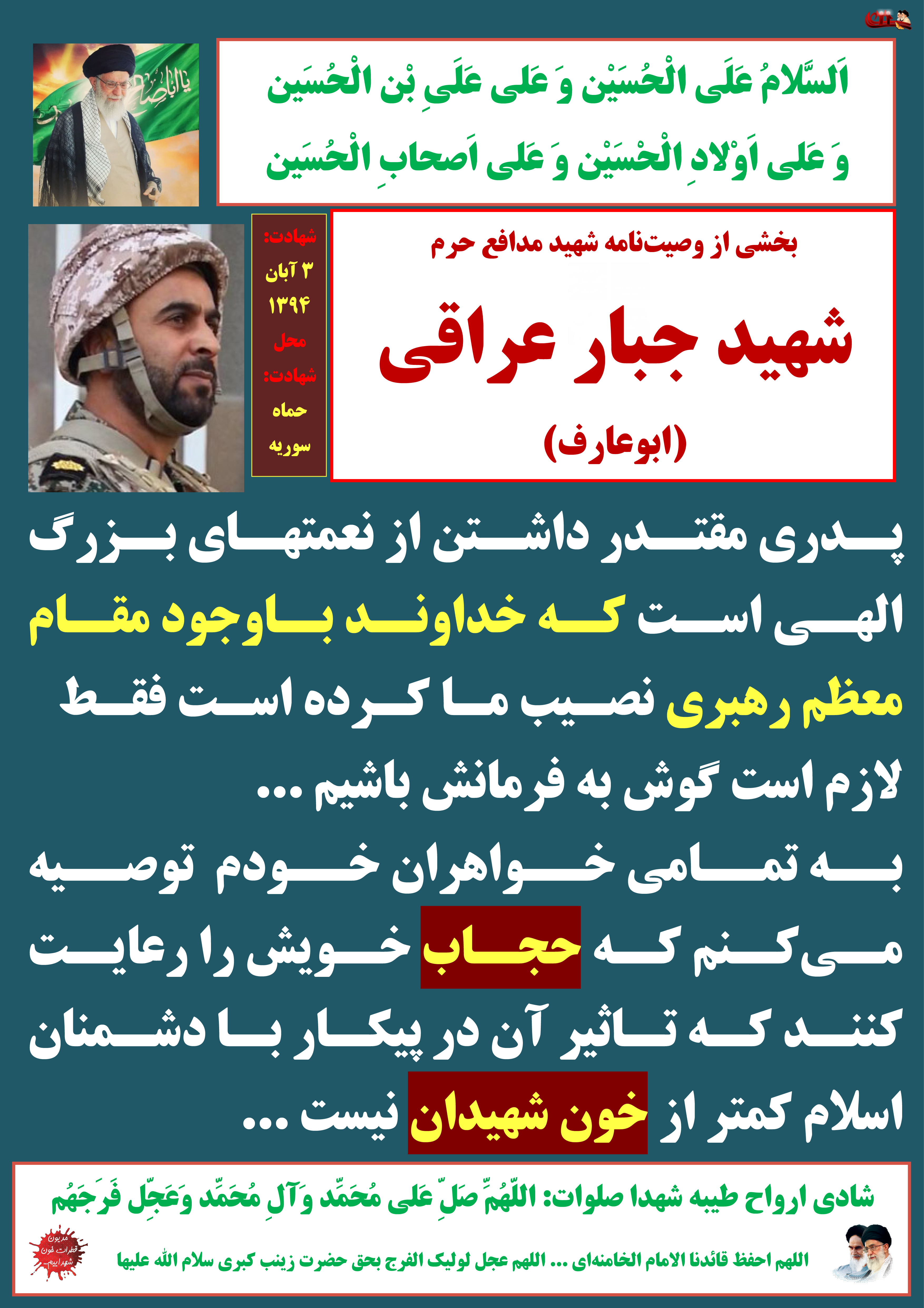 بخشی از وصیتنامه شهید مدافع حرم شهید جبار عراقی (ابوعارف)