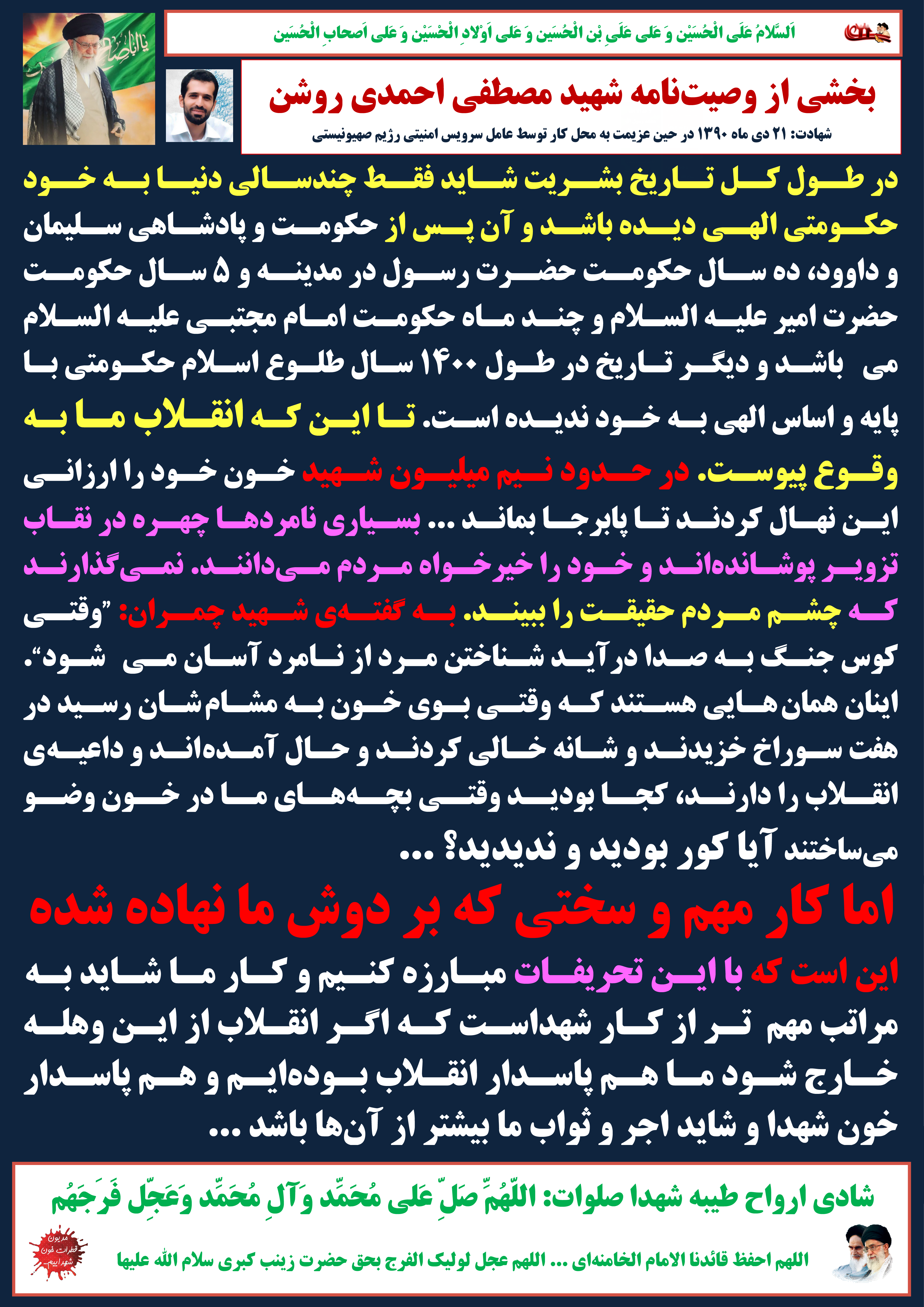 بخشی از وصیتنامه شهید مصطفی احمدی روشن
